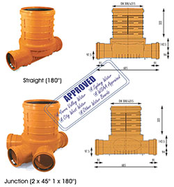 • Polypropylene base with choice of in-line (180°) or triple entry ( 2 x 45° and 1 x 180° ) branches with rubber ring joint ( RRJ ) sockets